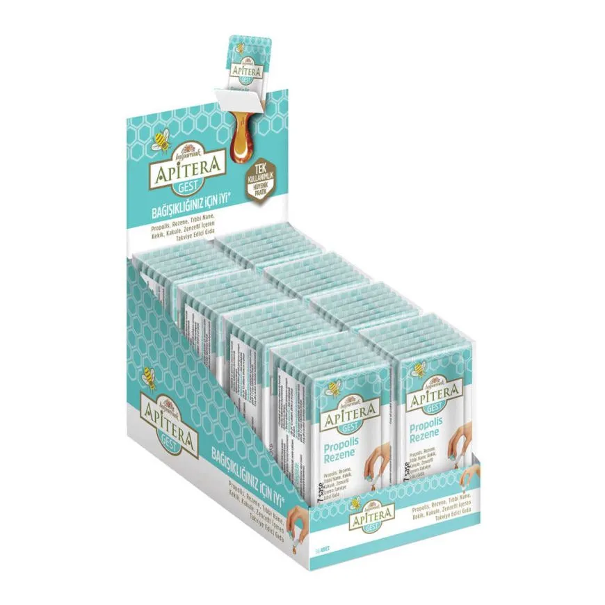 Apitera GEST Doğal Bal, Rezene, Tıbbi Nane, Kekik, Kakule, Zencefil ve Propolis İçeren Takviye Edici 56’lı Saşe