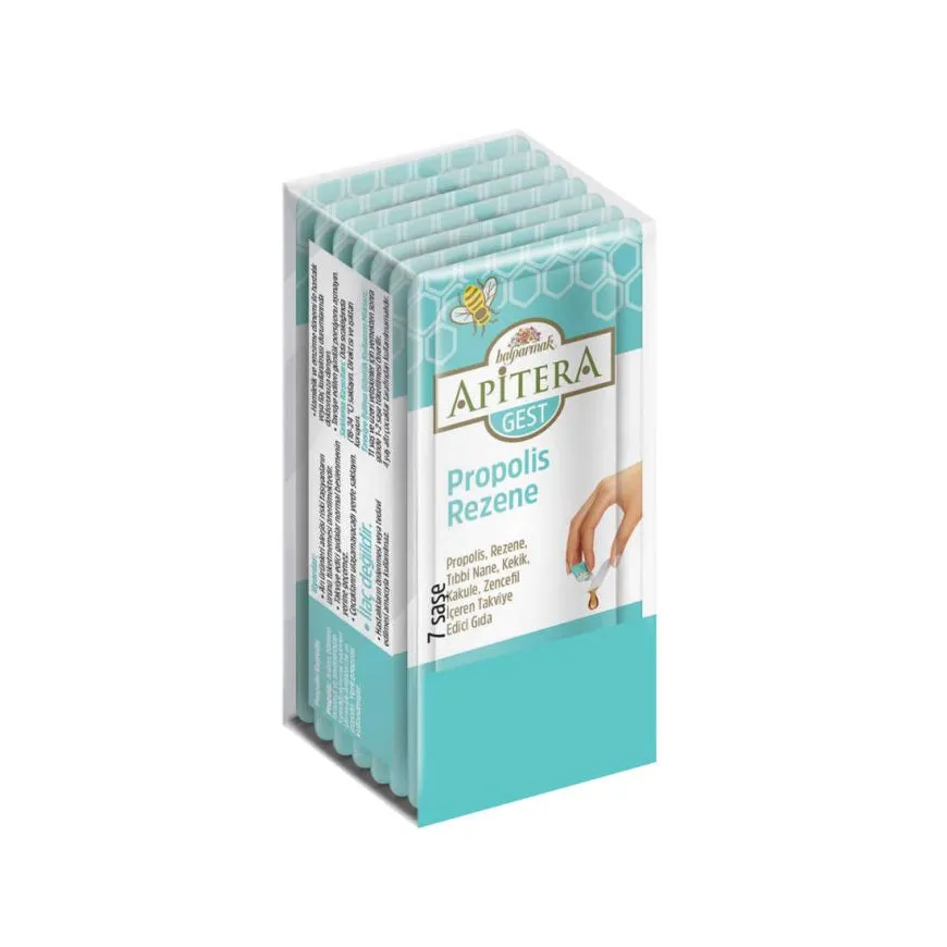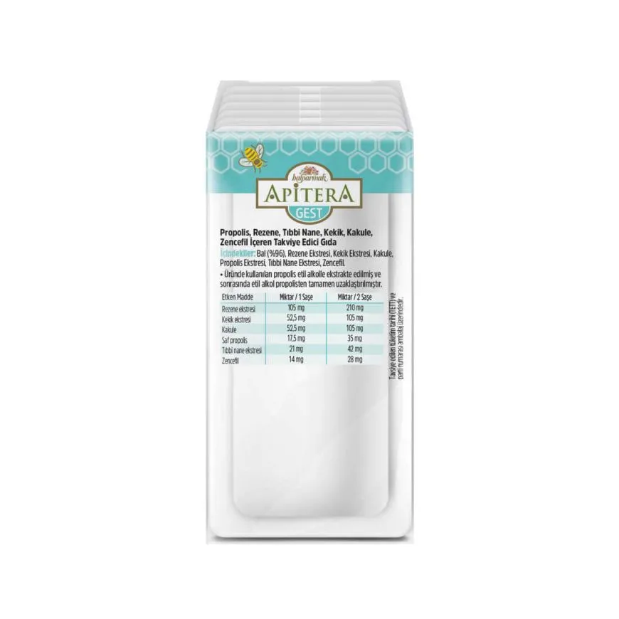 Apitera GEST Doğal Bal, Rezene, Tıbbi Nane, Kekik, Kakule, Zencefil ve Propolis İçeren Takviye Edici 7’li Saşe