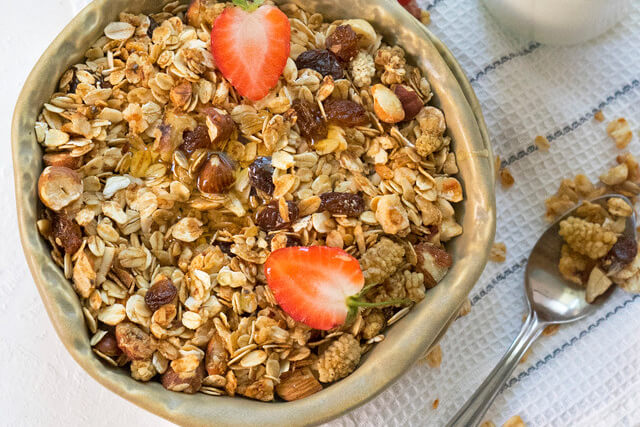 Granolayı, diğer gevrek çeşitlerinde olduğu gibi süt veya çırpılmış yoğurda ilave ederek tüketebilirsiniz. Karışımı tüketmeden hemen önce dilerseniz taze meyveler, çikolata parçacıkları veya tatlı soslarla da zenginleştirebilirsiniz. İşte bu kadar kolay ve lezzetli!
